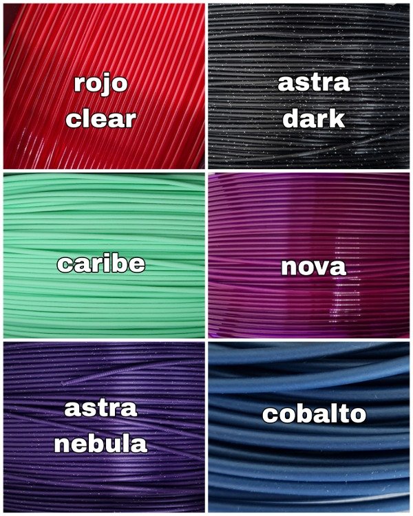 Azabache, blanco, magenta, verde, dorado (solo combinables entre ellos)