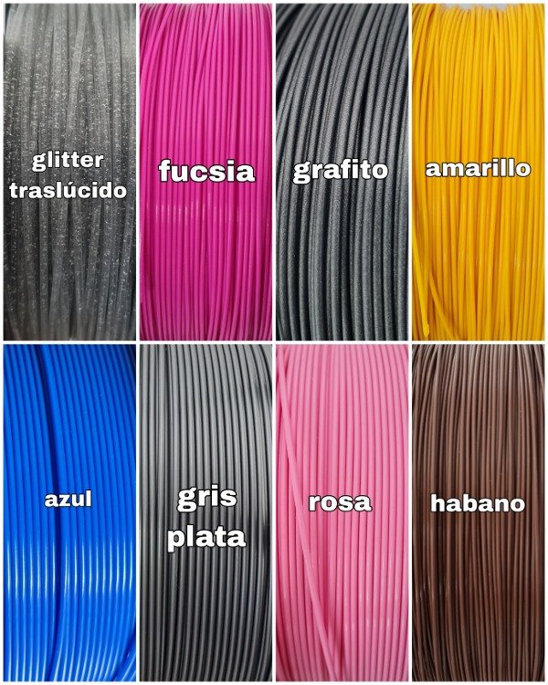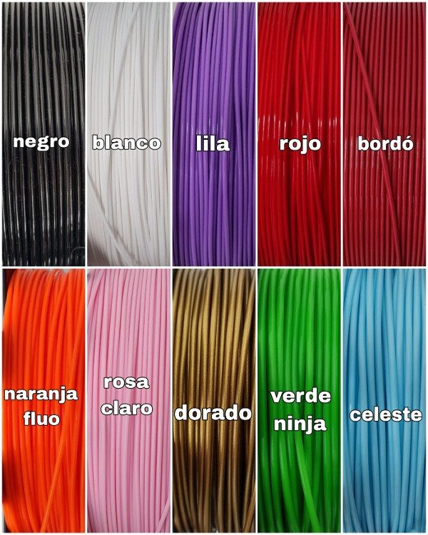 Azabache, blanco, magenta, verde, dorado (solo combinables entre ellos)
